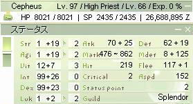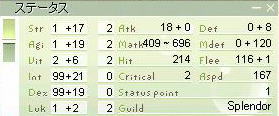 全部装備外してもブレスだけでint120になるよーになりました。ごいす。