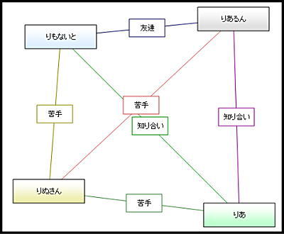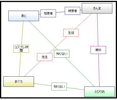 最近でもよく見かけたりする人を相関図に起こしてみた。
